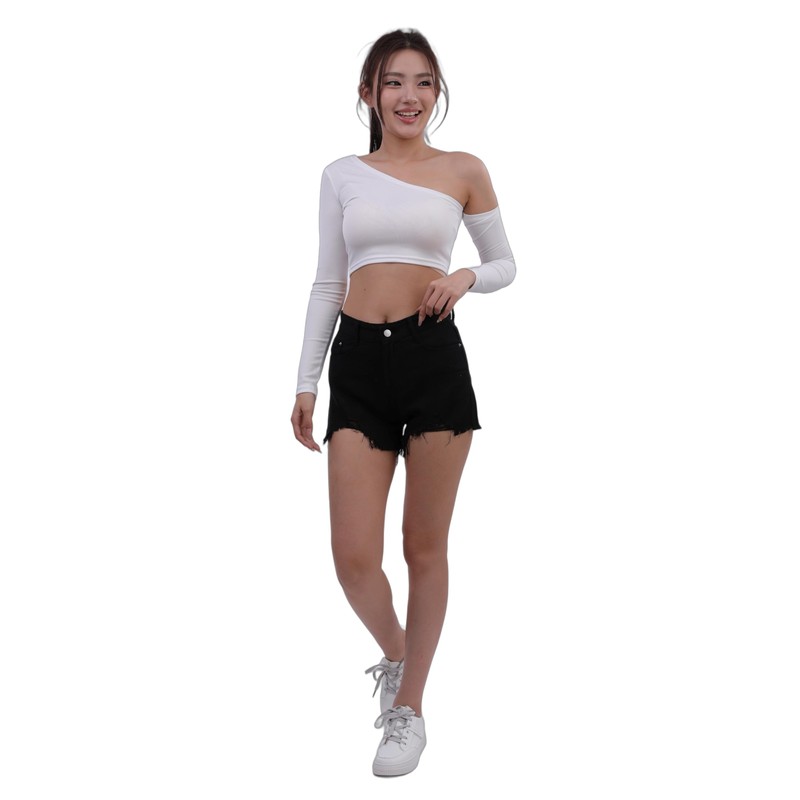- Long Socks Black / Present: Low rise for beautiful legs, adult casual, high waist shorts that enhance your style, distressed treatment, with convenient pockets