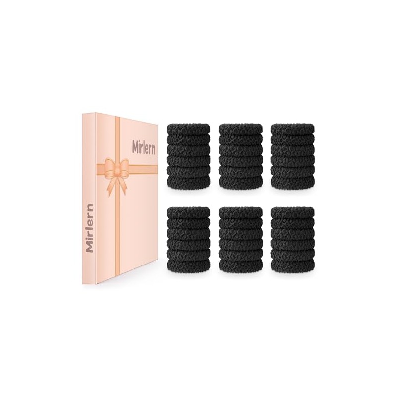 Mirlern 36 Pcs Soft Seamless Hair Ties, Elastic Hair Ties No Damage for Women & Girls, Ponytail Holders Hair Bands Accessories, Strong Hold Hair Scrunchies for Thin Curly Thick Hair (Black)
