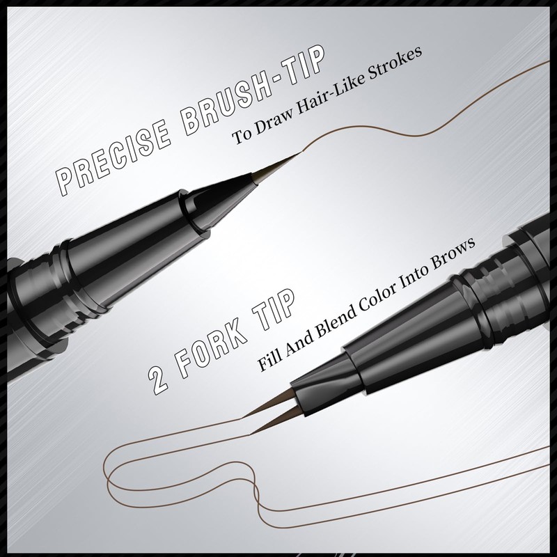 - Innovative Dual-Ended Brow Pen: 2-in-1 dual-ended eyebrow pen has magical tip to create hair-like strokes, 2-fork-tip to fill in gaps and blend color into brows; Easy and quick application in busy mornings, draw 3D natural real hair.