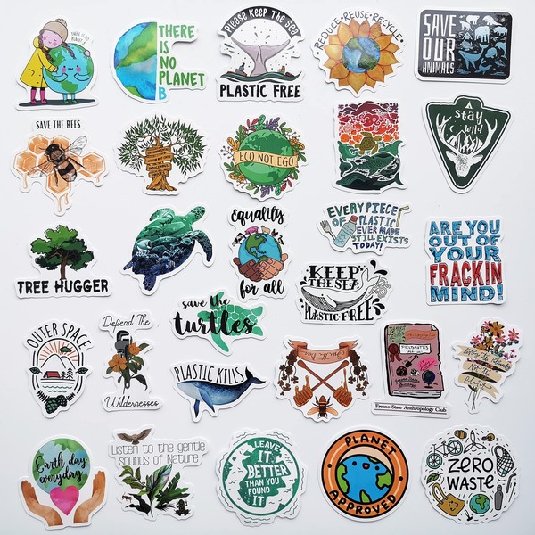 MiroSan Earth Day Stickers Nature Environment Labels Recycled Environmental Save the Planet Decals