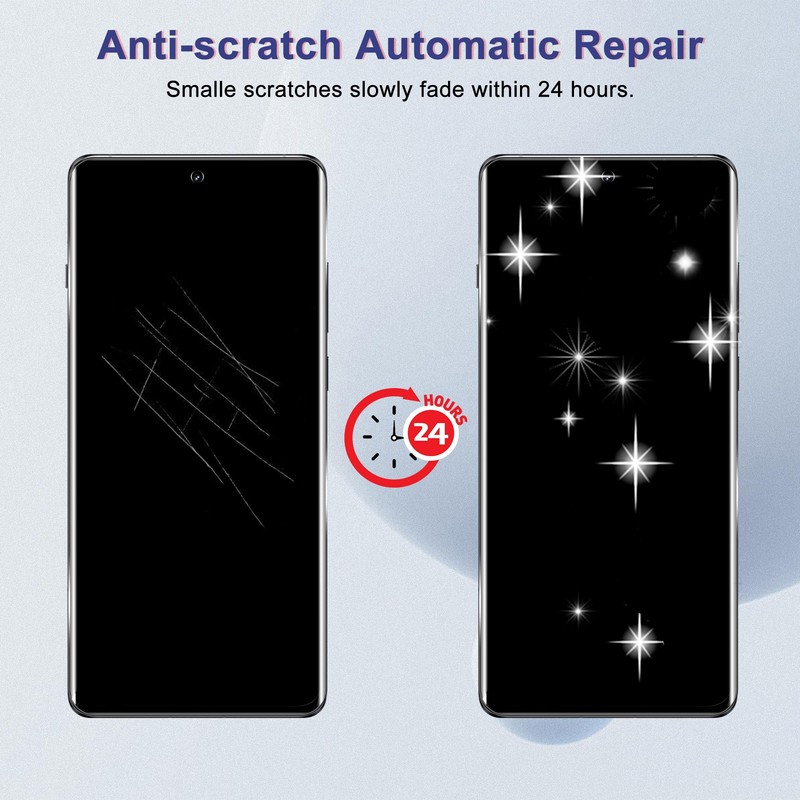 - 【High-quality Materials】 The screen protector is not a tempered film, it is made of TPU material, this flexible material can completely cover the curved edge, it is designed to provide the maximum height of coverage for your phone screen. Meanwhile, due to its self-healing properties, the film automatically recovers from minor scratches within 24 hours and keeps the display intact and like new.