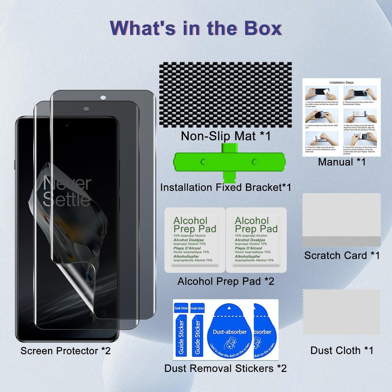 - 【Packing List and Customer Service】 2 x TPU privacy screen protectors (soft film), 2 x installation kit, 1 x scratch card. If you have any questions or suggestions about our products, please click on "Contact Seller" without hesitation. We will reply within 24 hours and do our best to find an optimal.