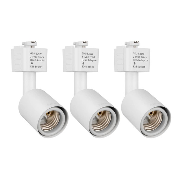 mirrea J Type Track Lighting Head to E26 Medium Screw Base Adapter Light Direction Adjustable Pack of 3 (White)