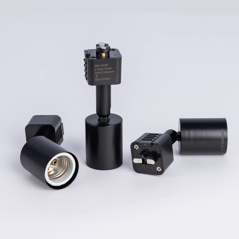 mirrea J Type Track Lighting Head to E26 Medium Screw Base Adapter Light Direction Adjustable Pack of 6 (Black)