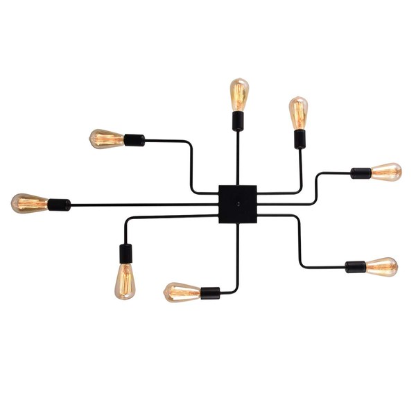 mirrea Modern Industrial Semi-Flush Mount Metal Ceiling Lighting for Rectangular Room 8 Lights (Black Painted)