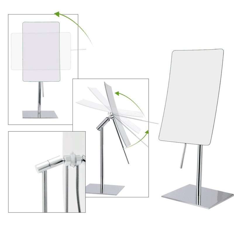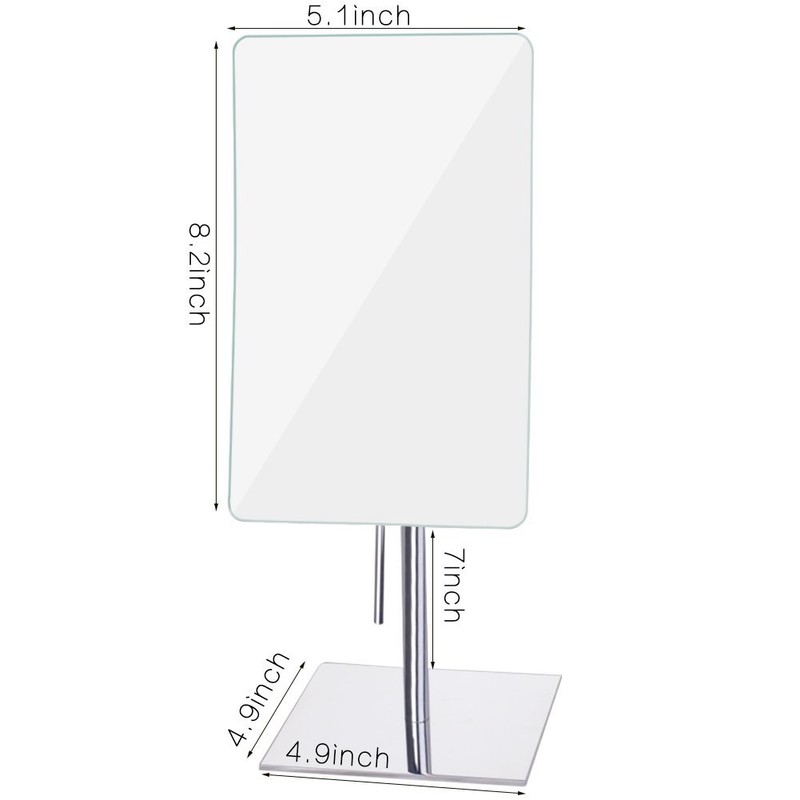 The Minimalist Rectangular Free Standing mirror is the perfect combination of simplicity and elegance. The 3X magnified mirror has a 5" x 8" viewing area and is 13. 75" tall. A small &joy stick; at the bottom of the lens allows you to tilt or swivel the mirror in any direction for the best viewing angle possible.