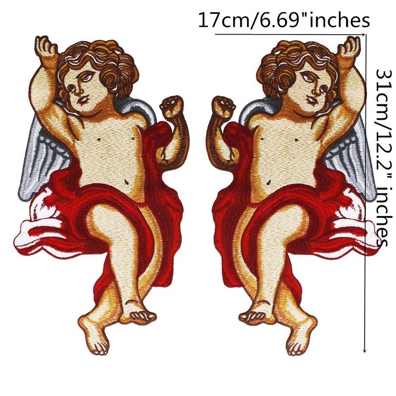 Mirror Large Fashion Embroidery Angel Boys Patches Motif Badge Applique Sew on for Clothes Decorated Sewing 1pair