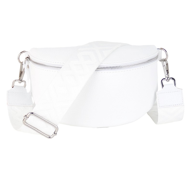 MIRROSI® Women's Bum Bag, Genuine Leather, Made in Italy, Shoulder Bag, Chest Bag, Crossbody Bag (1 Bag & 2 Straps), White (fish tackle)