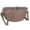 MIRROSI® Women's Bum Bag, Made in Italy, Genuine Leather Shoulder Bag, Chest Bag, Crossbody Bag Made of Genuine Leather, Available in 3 Sizes, Taupe (Silver Zipper)