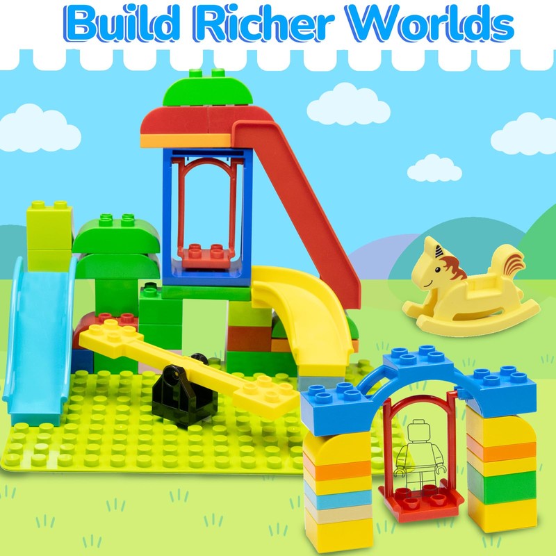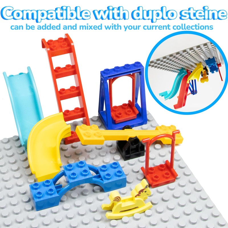 - Compatible with Duplo bricks: these swings, slides and playground accessories are fully compatible with all duplo bricks. Expand your child's creative possibilities without passport problems. Ideal for expanding classic duplo sets