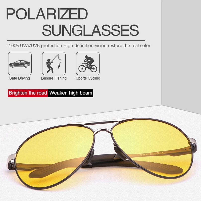 • Polarised UV400 safety goggles: anti-glare driving glasses with full UV400 protection, yellow lens space. 100% UVA and UVB protection allow for better visibility when driving at night or on cloudy, foggy, rainy days, making driving and all outdoor activities safer. High-definition lens gives you a natural and clear view. Polarized TAC lenses add special yellow tinted coatings to enhance contrast and definition.