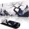 Mis.Moon Japanese White Mouse Mat, XXL Gaming Mouse Mat, Large Cherry Blossom Desk Mat, Anime Gaming Keyboard Mat, Non-Slip Rubber Base, Large Extended Desk Protection for Home Office