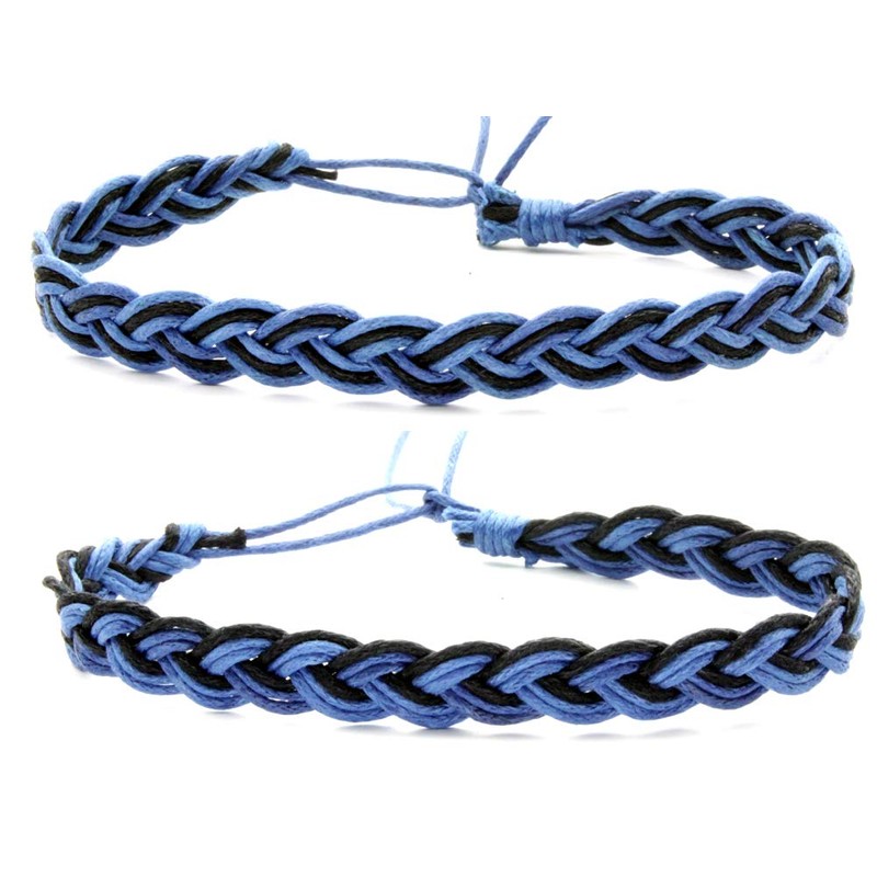- A set of braided bracelets in the combinations Blue/Black/Blue and Blue/Blue/Black