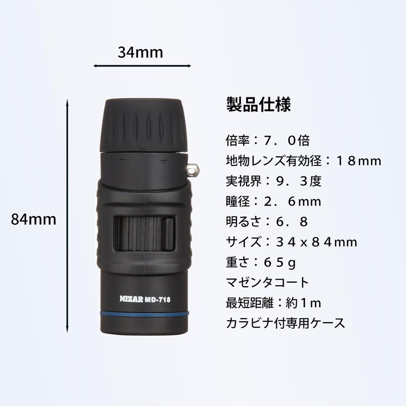 Misar Tech MD-718 Monocular 7x 18 Cal Small Type with Case Black