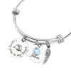 Each charm and other embellishments are added to a 2mm triple loop wire bangle bracelet. The triple loop allows for durability and strength as you take on and off your bracelet with everyday wear. The bracelet is 60mm, which is the typical size for adult women. You will pinch the two triple loops together making the bracelet wider, so you are able to fit your hand through the bracelet. Our hands are wider than our wrists so once your hand is through, and you release the triple loops, the bracelet will shrink back and fit your wrist accordingly.