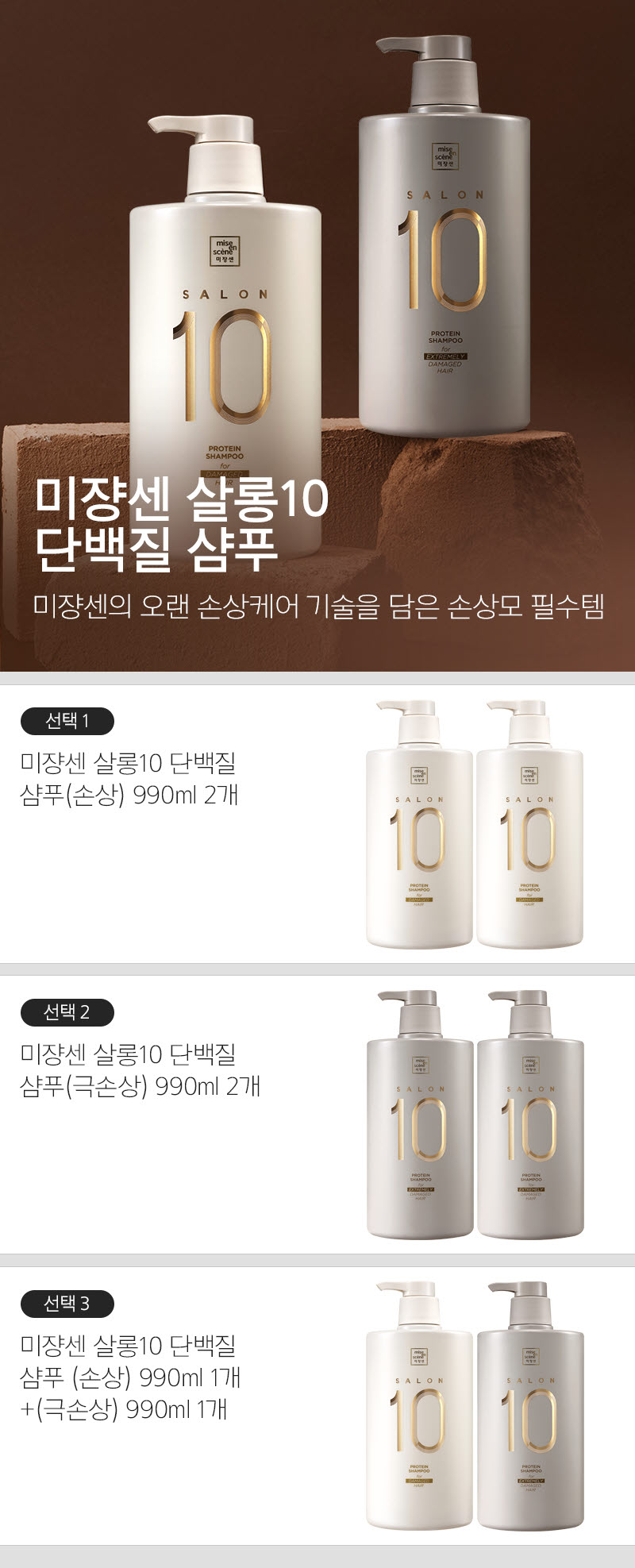 Mise-en-scène [Coupon Discount] Mise-en-scène Salon 10 Protein Shampoo 990ml 2 packs (optional), 01_damage 990ml x2 / 미쟝센 [쿠폰할인]미쟝센 살롱10 단백질 샴푸 990ml 2입 (옵션), 01_손상 990ml x2
