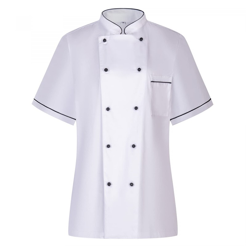 - Short-sleeved chef jacket for workwear in the hospitality industry.