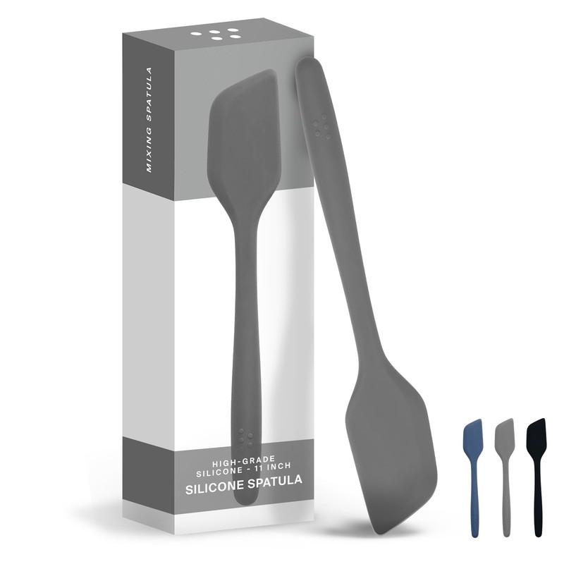 Misen Heat Resistant Silicone Spatula - Nonstick Cookware Safe, Flexible Kitchen Turner for Baking, Egg Mixing, Pancake Flipping - Large, Durable Rubber Spoonula - 11 Inch - Gray