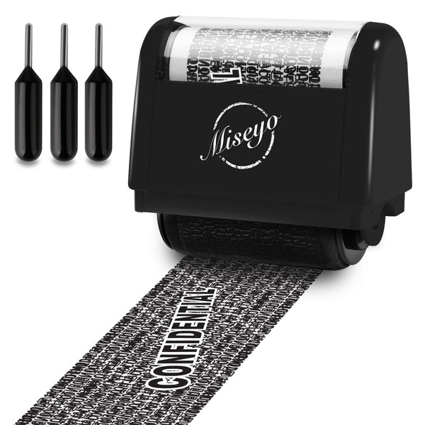 Miseyo Identity Theft Protection Roller Stamp Set - Black (Incleded 3 Refill Ink)