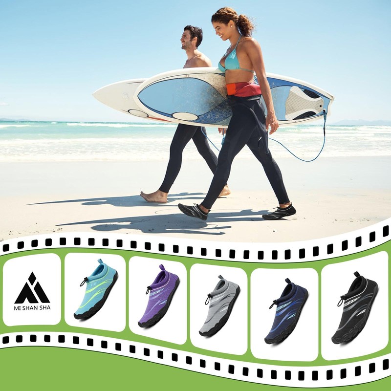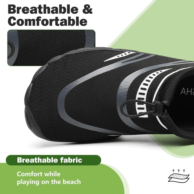 The upper material is breathable and flexible, so the beach shoes are as soft on the skin as socks and provide a non-restrictive feel, keeping the feet dry inside the water shoes.