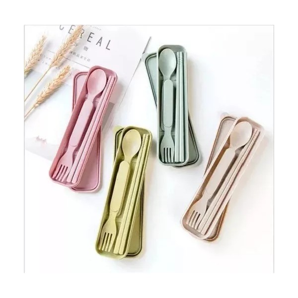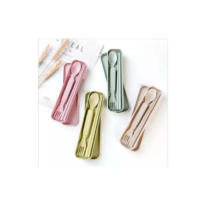 Cubiertos portátiles ecológicos sustentable elabora de fibra de trigo, ideales para la oficina, escuela y complementar con tu box luch.