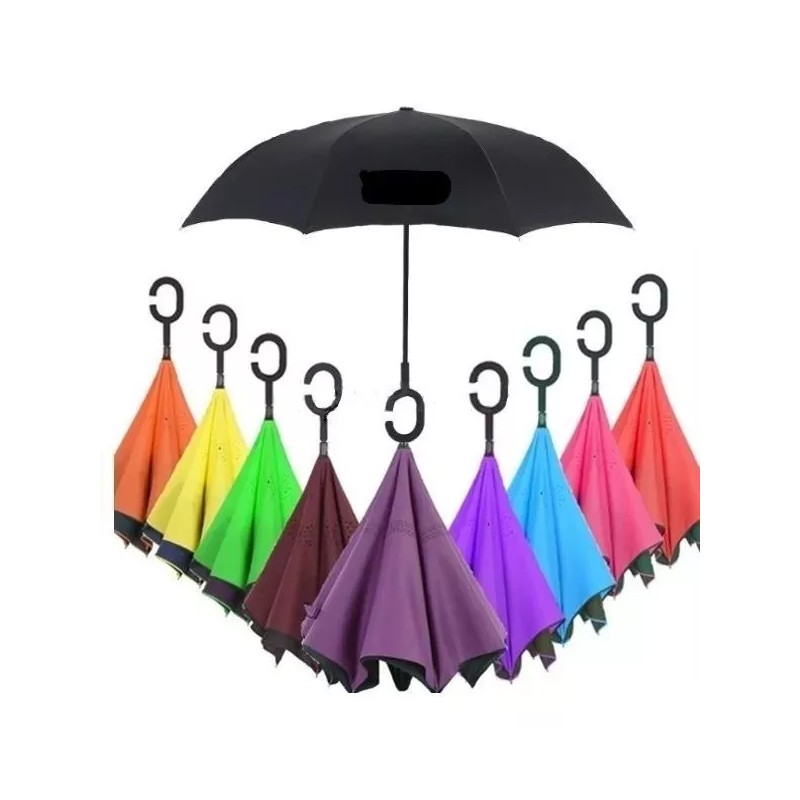 Para que no te sorprenda la lluvia paraguas invertido doble capa reforzado diferentes colores y estampados.