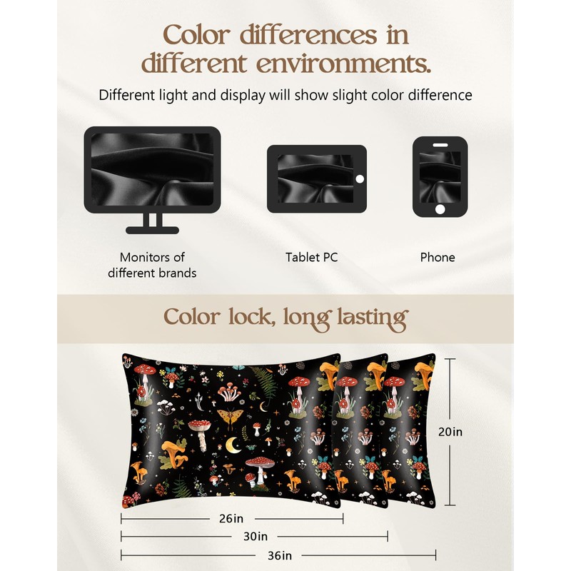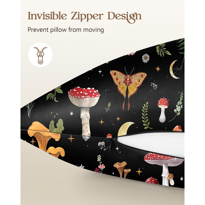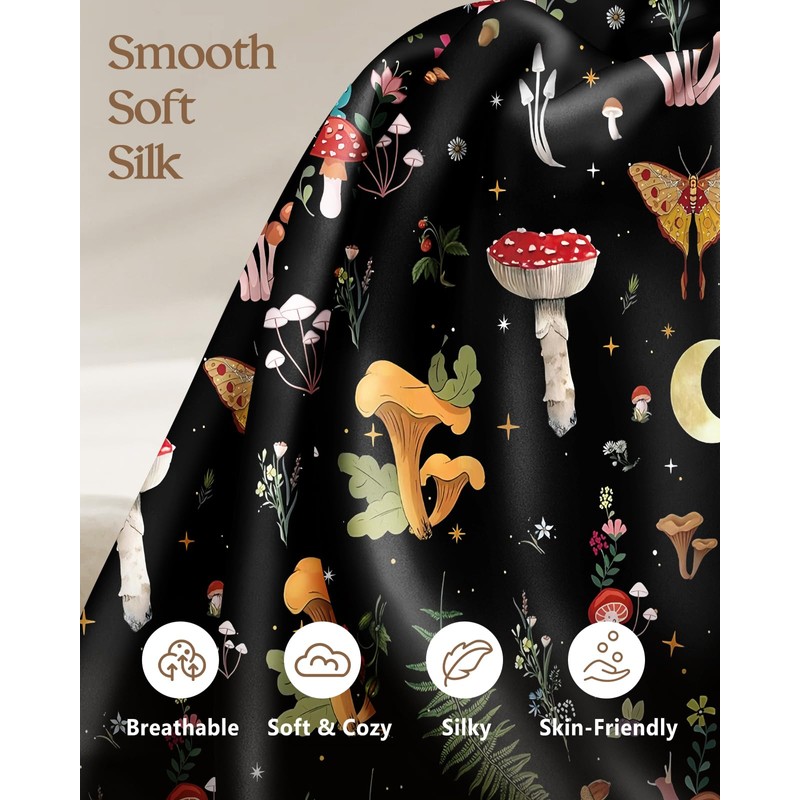 Miss Adola 2 Pack Silk Pillowcase - 20x26 Inch Standard Size Silk Pillow Case with Hidden Zipper for Women Lady Smooth Soft Breathable Cute Design Pillowcase for Hair and Skin, Black Mushroom