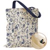 Miss Adola Aesthetic Canvas Tote Bag with Inner Pocket for Women, Cloth Cotton Totes Bag with Pattern for Shopping, Gym, Blue Line Flower