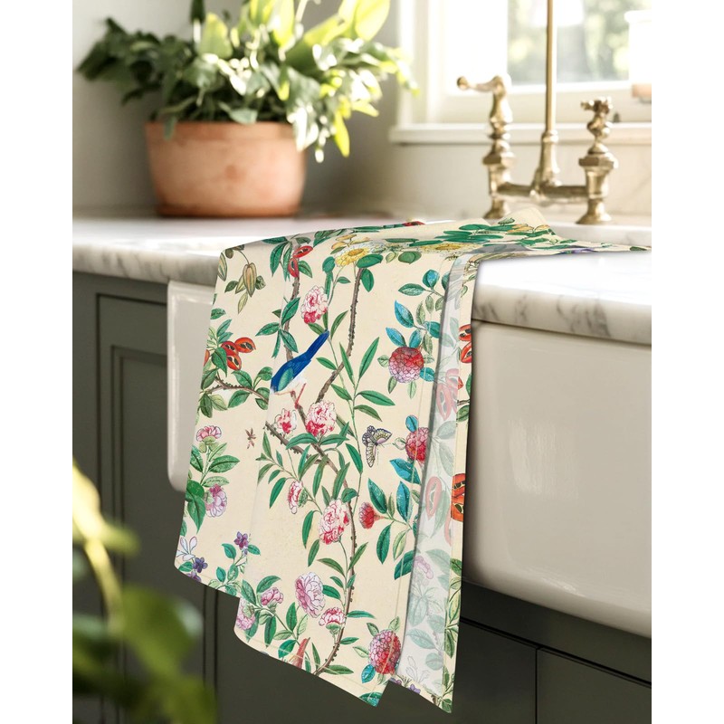 Miss Adola Tea Towels Set of 2-18"x26" Cotton Kitchen Towels with Hanging Loop Floursack Dish Cloths Cute Funny Reusable Hand Towel for Housewarming Kitchen Decor, Flower Bird