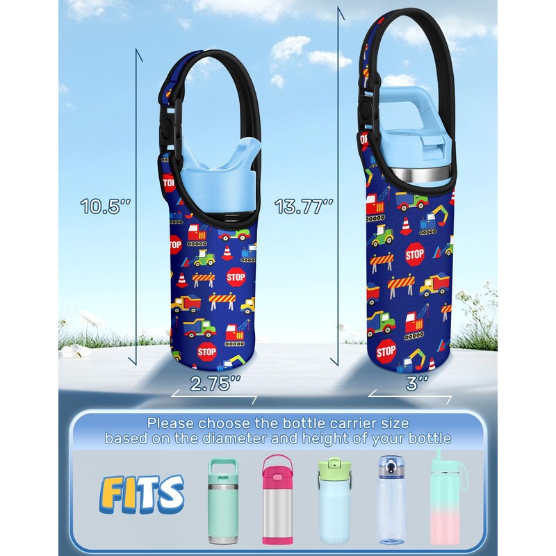 Miss Adola Water Bottle Carrier with Strap - Handheld Kids Water Bottle Holder for 14-20 oz Cute Cartoon Design Neoprene Crossbody Bottle Sling Bag for Boys for Insulated Drink Bottle, Excavator Car