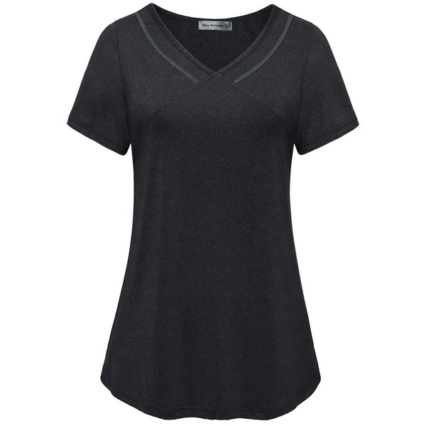 MISS FORTUNE Womens Workout Clothes Plus Size Athletic Wear Shirts Running Tops Loose Fit Short Sleeve Yoga Tshirt V Neck Activewear Black XXL