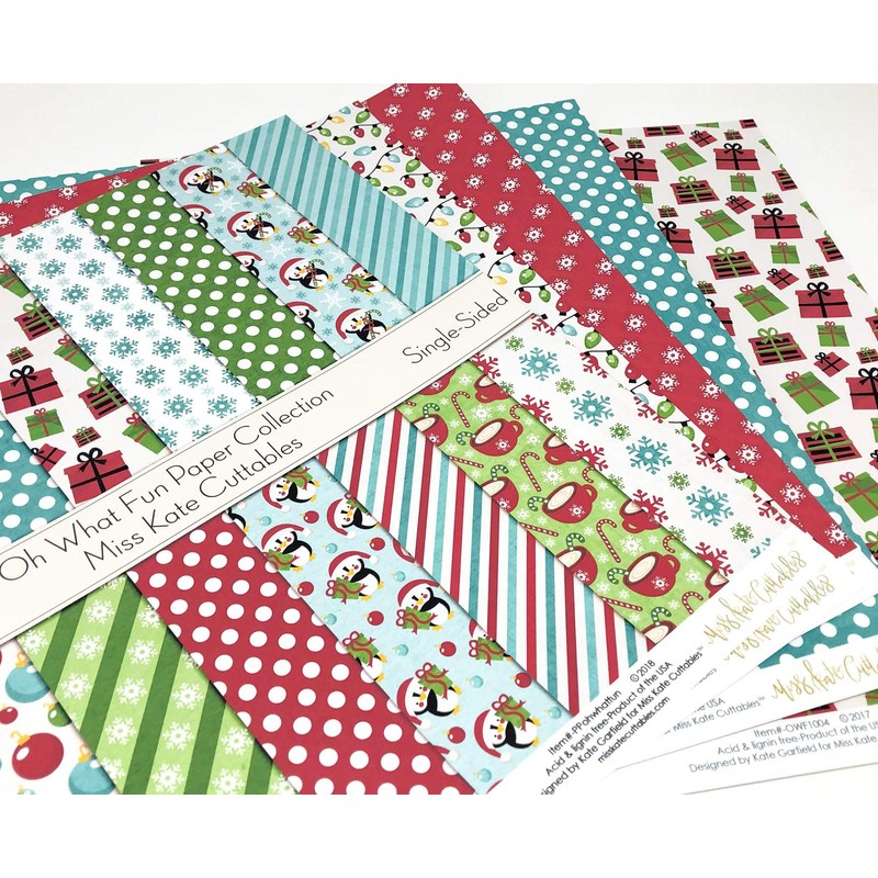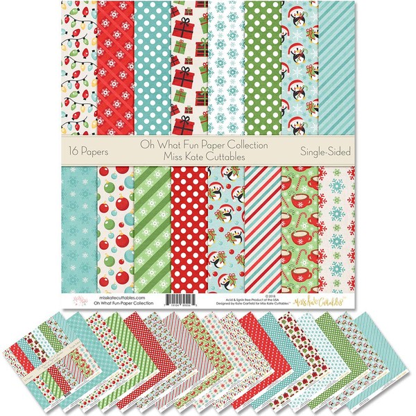 Miss Kate Cuttables Paper Pack - Oh What Fun - Scrapbook Premium Special Paper Single Sided 12" x 12" Collection Contains 16 Sheets