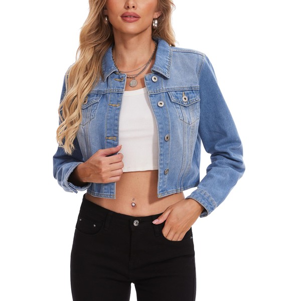 MISS MOLY Women's Denim Jackets Casual Cropped Long Sleeve Trendy Casual Jean Jackets Blue L