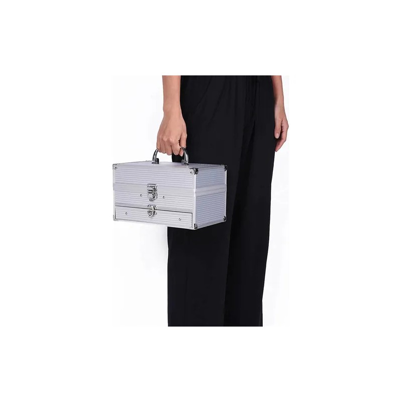 La Caja de maquillaje tiene varias capas y un aspecto duradero, ojos, labios y capas de color de rubor que se tiran o doblan hacia fuera para mostrar todas las paletas.
