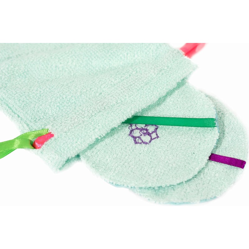 The sides of these pads are made from different materials. The pads have a soft, silk surface to offer gentle cleansing action whilst the bamboo viscose surface provides a gentle exfoliating effect.