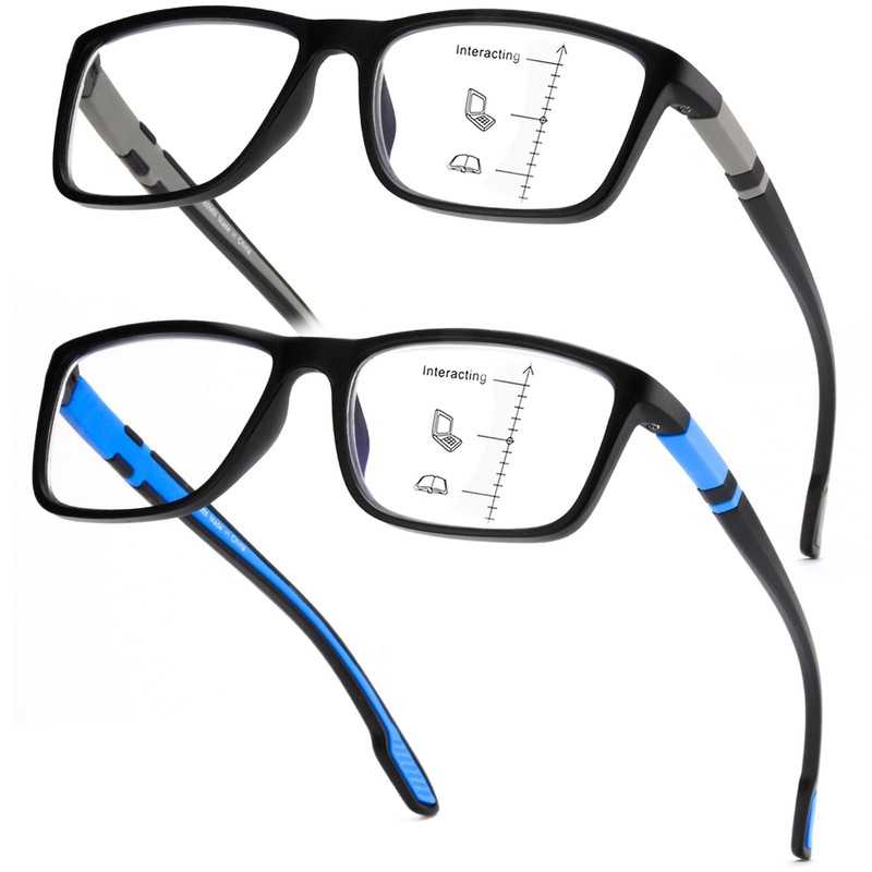 Missfive 2 Pack Mens Multifocus Progressive Reading Glasses, Enhanced Non-Slip TR90 Frame Lightweight Multifocal Readers, Anti-Blue/UV/Eyestrain Eyewear for Near-Range, 1.25x