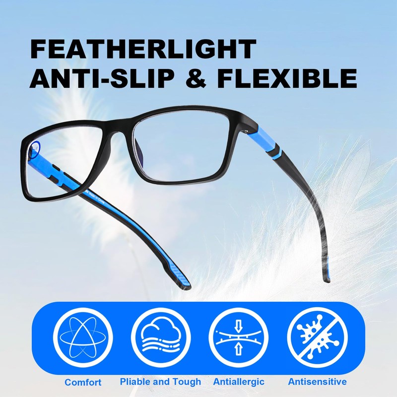 - ANTI-SLIP & ENHANCED COMFORT: Not kidding in lightweight; And the inner sides of the temples feature skin-friendly rubber, which prevents allergies and enhances grip; Anti-slip grooves at the temple tips ensure your glasses stay located while farely feel the weight
