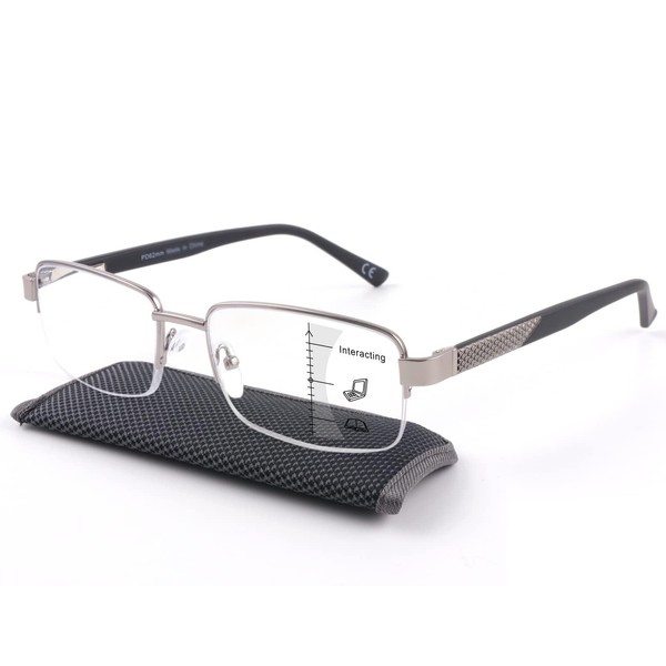 - ★[Stylish Half-Rim Design]: Progressive reading glasses men, classic Semi Rimless design, rectangular lenses, which make you stand out from the crowd. It's the best gifts for fathers, friends, elders, and yourself.