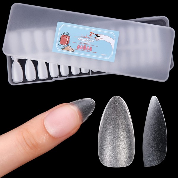 Missgooey Nail Tips, Sanded Nail Tips, Set of 300, 15 Sizes, Almond, Full Coverage, Plain Tips, Clear Tips, Practice, Commercial Use, Self Gel Nails