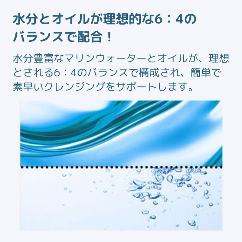 - 【水分とオイルが理想的な6:4のバランスで配合!】水分豊富なマリンウォーターとオイルが、理想とされる6:4のバランスで構成され、簡単で素早いクレンジングをサポートします。