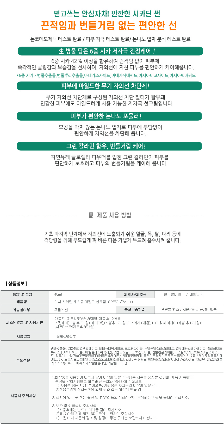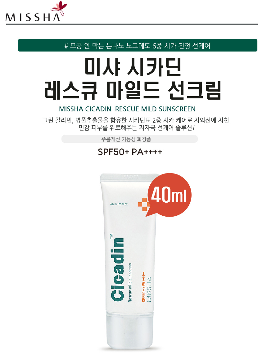 Missha Cicadin Rescue Mild Sun Cream 40ml / 미샤 시카딘 레스큐 마일드 선크림40ml