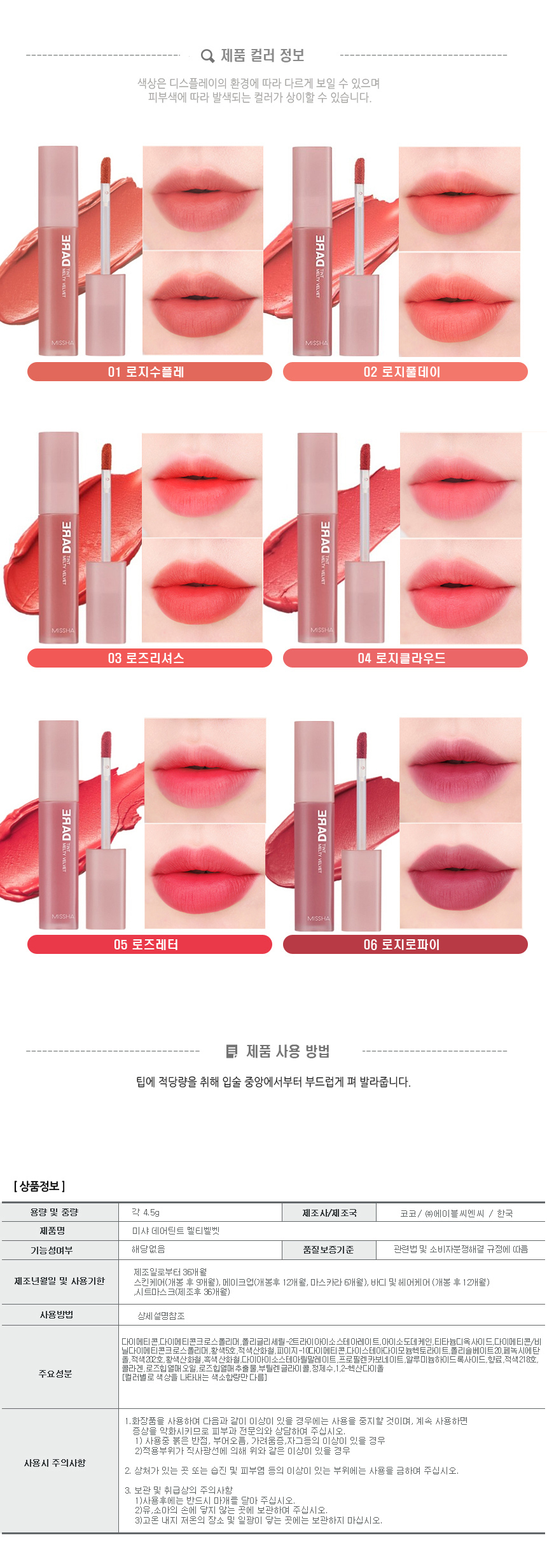 Missha Dare Tint Melty Velvet / 미샤 데어틴트 멜티 벨벳