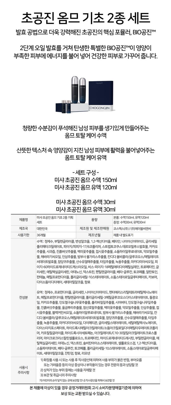 [Missha] Missha Chogongjin Homme Basic 2-piece Special Set / [미샤] 미샤 초공진 옴므 기초 2종 기획세트