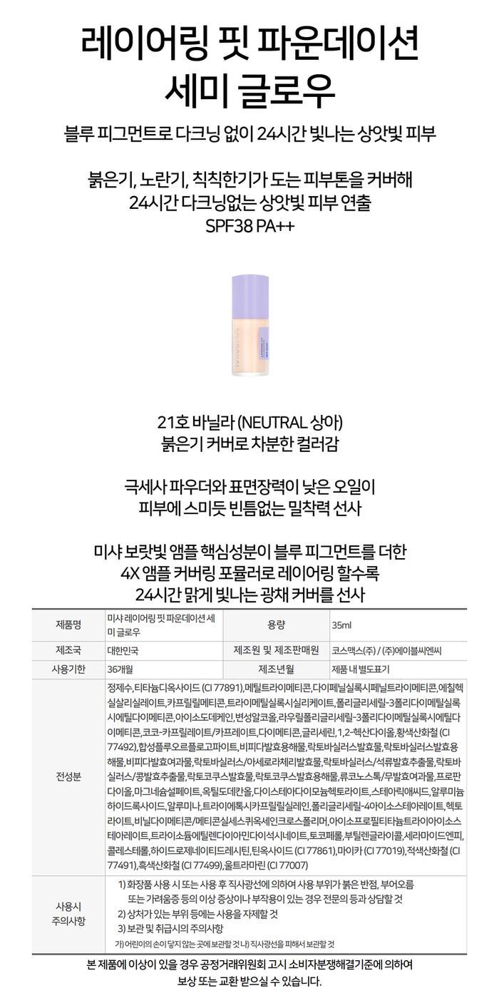 미샤 미샤 레이어링 핏 파운데이션 세미 글로우 35ml (21호 바닐라)