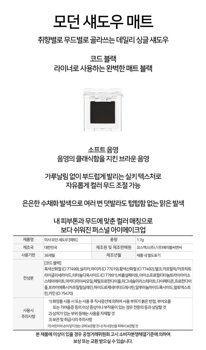 미샤 미샤 모던 섀도우 매트 1.7g (코드 블랙)
