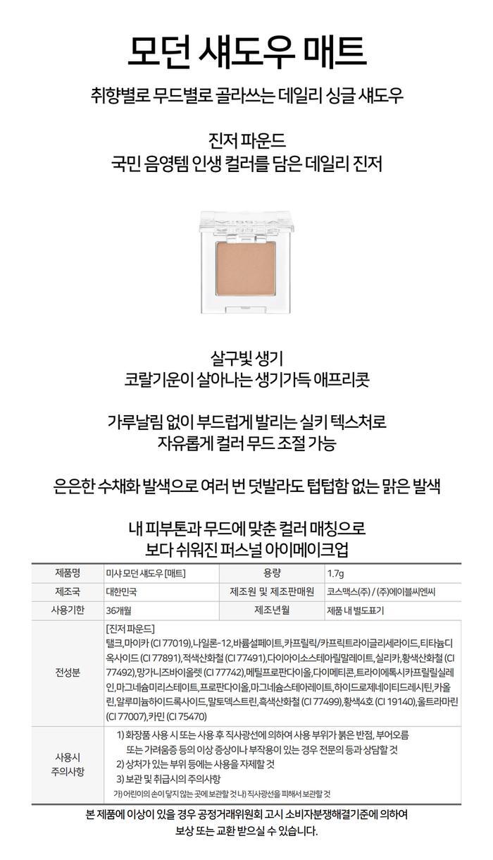 미샤 미샤 모던 섀도우 매트 1.7g (진저 파운드)