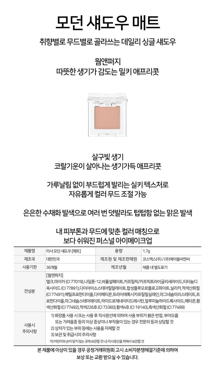 미샤 미샤 모던 섀도우 매트 1.7g (웜앤퍼지)