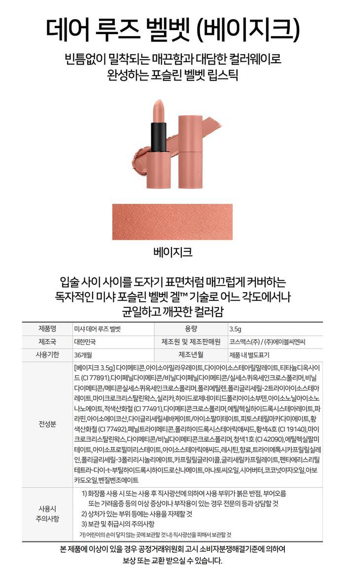 미샤 미샤 데어 루즈 벨벳 3.5g (베이지크)
