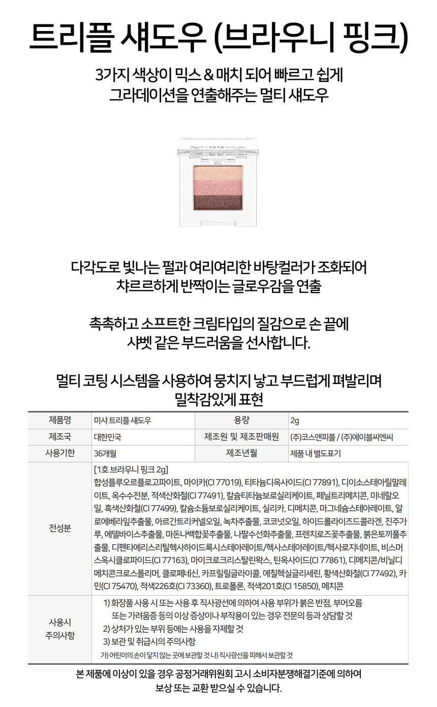 미샤 미샤 트리플 섀도우 2g (브라우니 핑크)