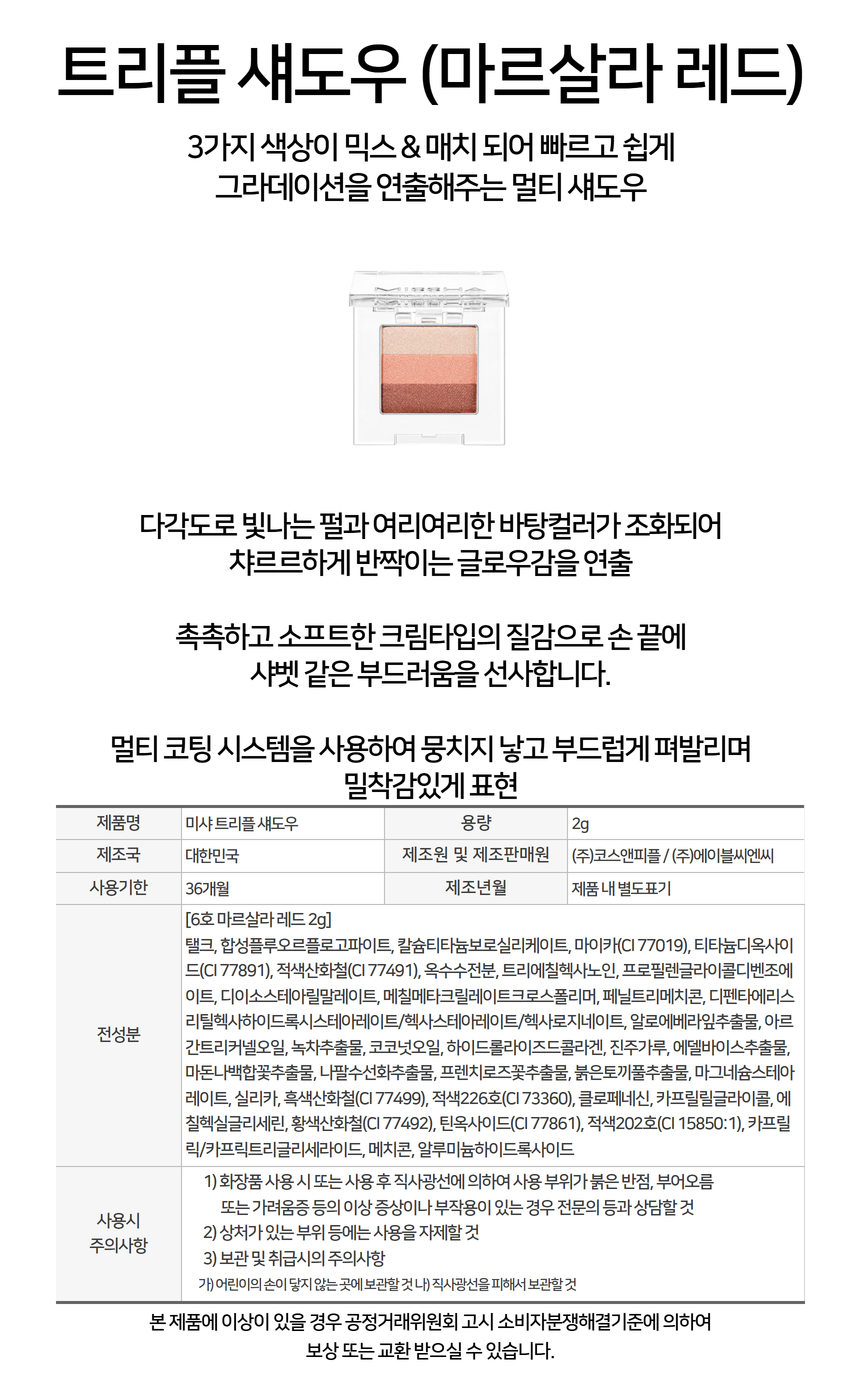 미샤 미샤 트리플 섀도우 2g (마르살라 레드)